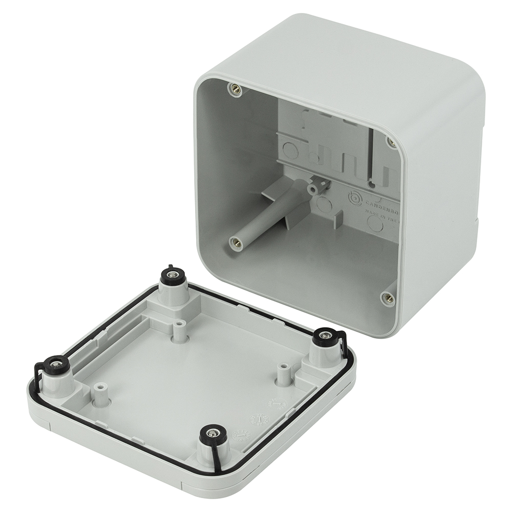 • Easy Maintenance. Front located screws for fixing lid to base for ease of component fitting and maintenance after unit has been mounted. Self-retained, slide out screw covers conceal screws on front.
